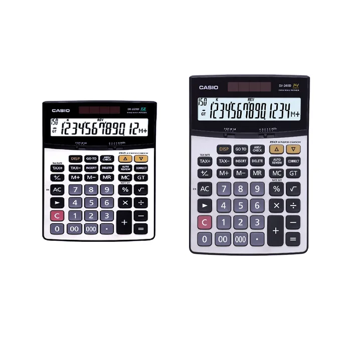 (DJ-220D), 12digits, large display12,0 steps check, (DJ-240D), 14digits, large display,120 steps check