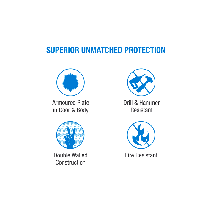 Armoured Plate in Door & Body, Fire Resistant, Drill & Hammer Resistant, Double Walled Construction