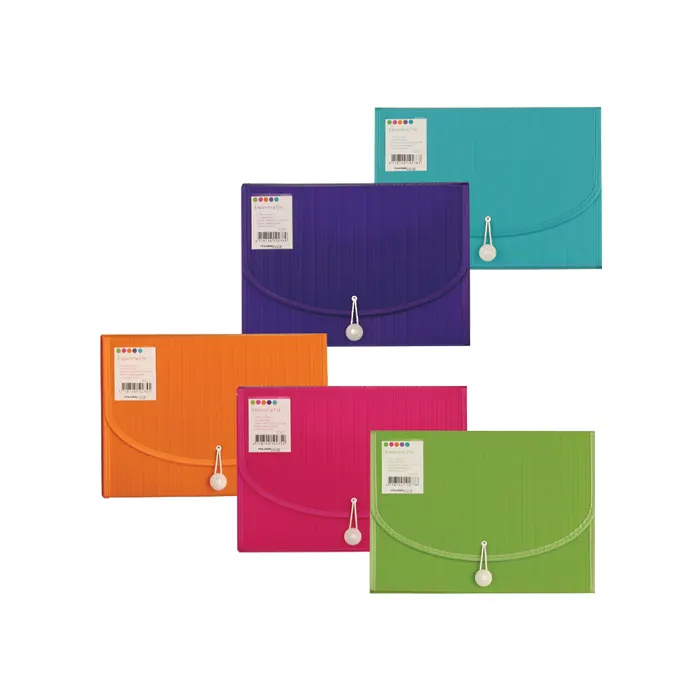 Durable fabric gusset & fabric webbing A4 Elastic and button closure Assorted colors